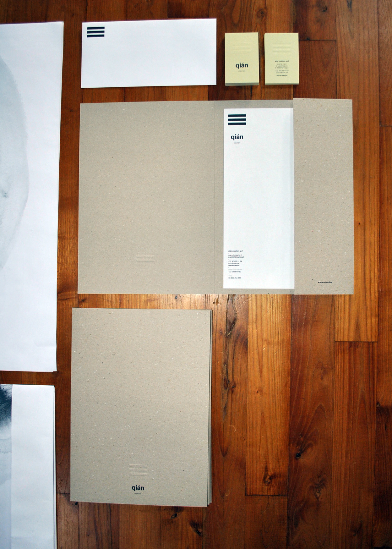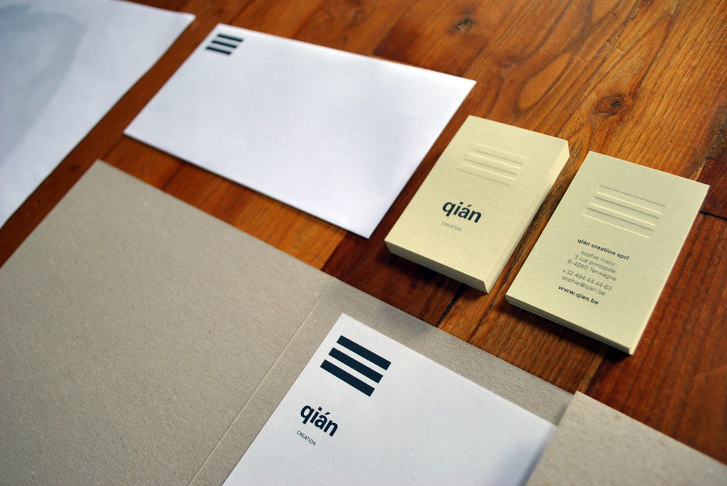 identité de qián creation avec déclinaison de supports (cartes, posters, farde, entête)